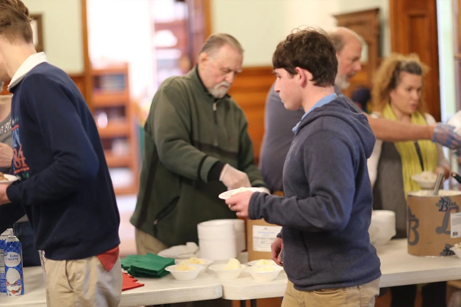 MSA's Alumni Association knows one of great joys of being young--eating ice cream in the middle of the day. Each year, the Alumni Association brings this joy to the Hill on a Friday afternoon in the winter. Today, members of the Alumni Association scooped ice cream for current students after lunch. "This is a great tradition that connects MSA's alumni with current students," commented Dawn Kidd, MSA Alumni Coordinator. It's remarkable how easily the conversation flows when ice cream and sprinkles are involved.