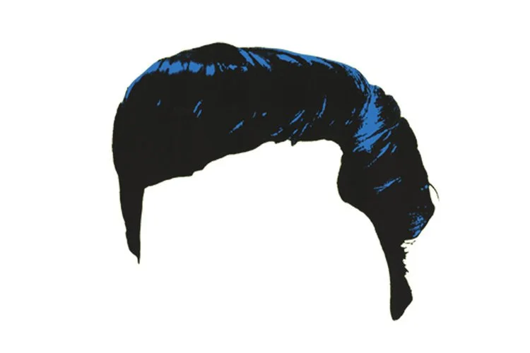 Metonymy can also work visually. In the image below, the play being advertised is unmistakably about Elvis Presley, even though he isn't named anywhere on the poster. His iconic pompadour is the part being substituted for the whole: