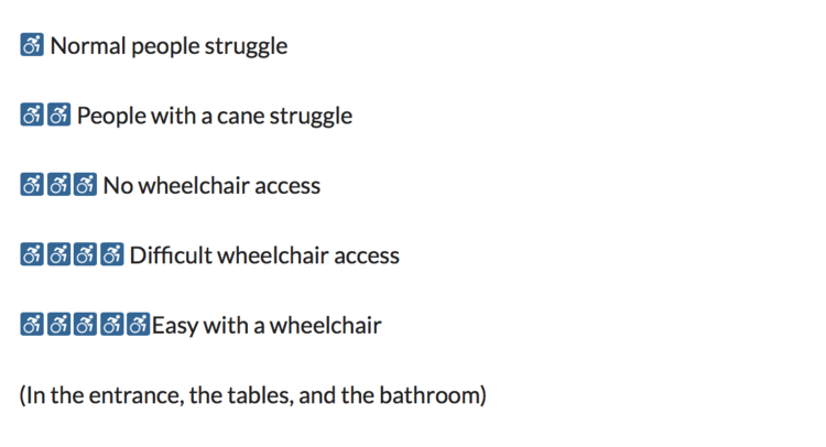 “I rate restaurants not only for their food, but also their ease-of-access.”
