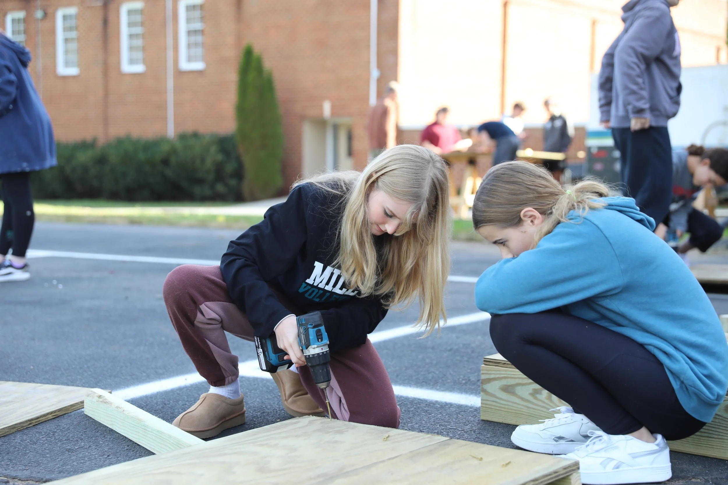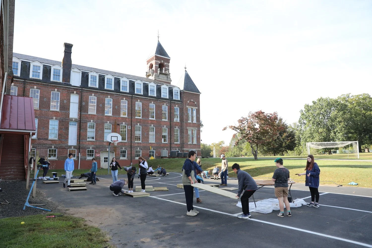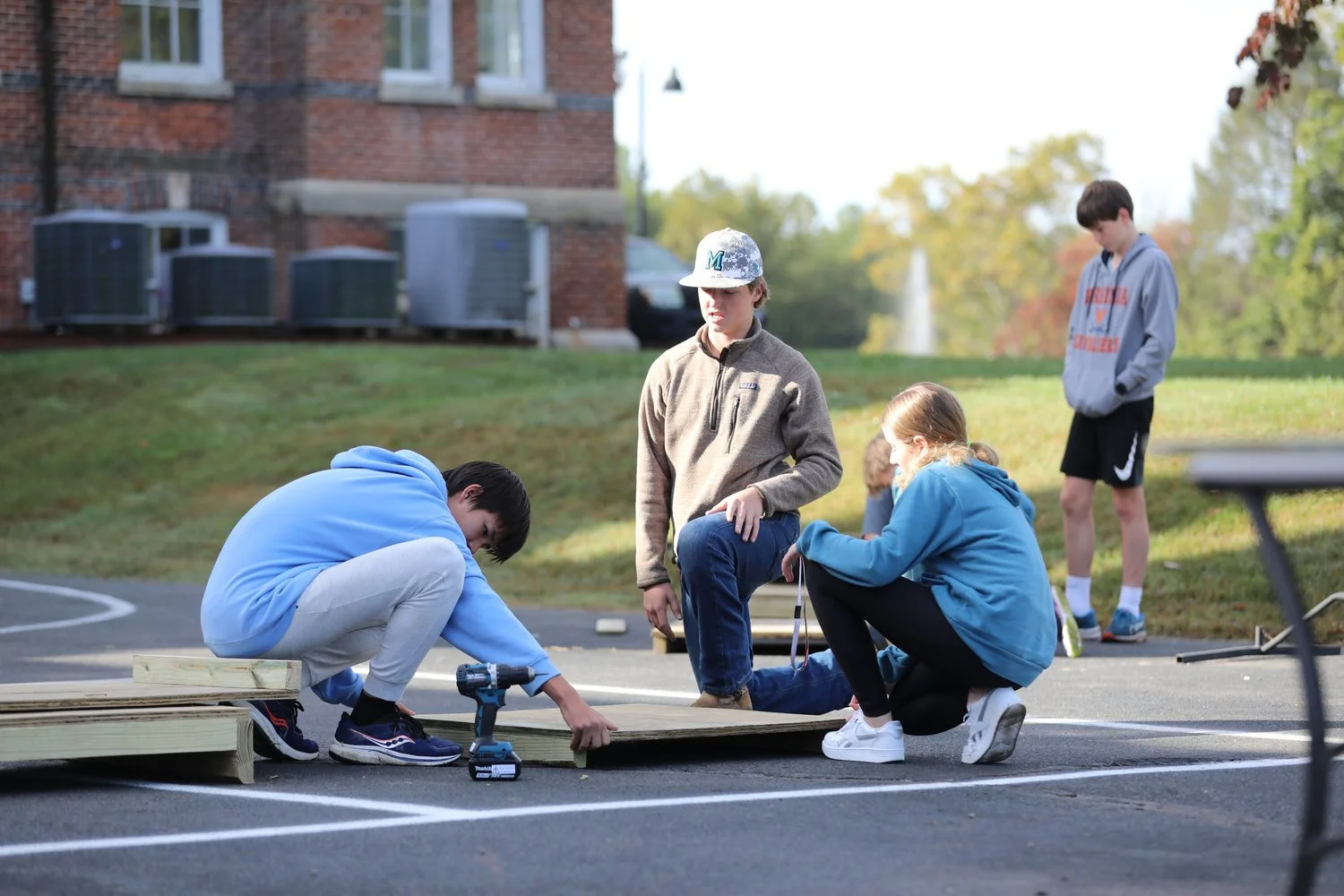 The eighth graders spent the day building dog shelters for the local non-profit HOWS Project. Working together, they constructed six dog houses that will be donated to HOWS later this week. The students were led by eighth-grade science teacher Christine Zito and Design/Build teacher Al Hanson.