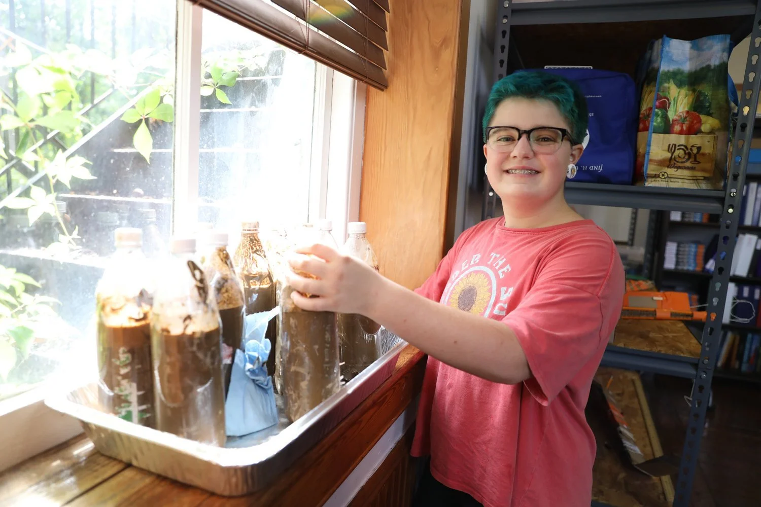 The Winogradsky column project offers students an opportunity to observe an interconnected microbial ecosystem in action. Currently, the columns are basking in the sunlight, where they will incubate. This hands-on project is just one example of the engaging activities that Ms. Zito leads with her 8th-grade class.