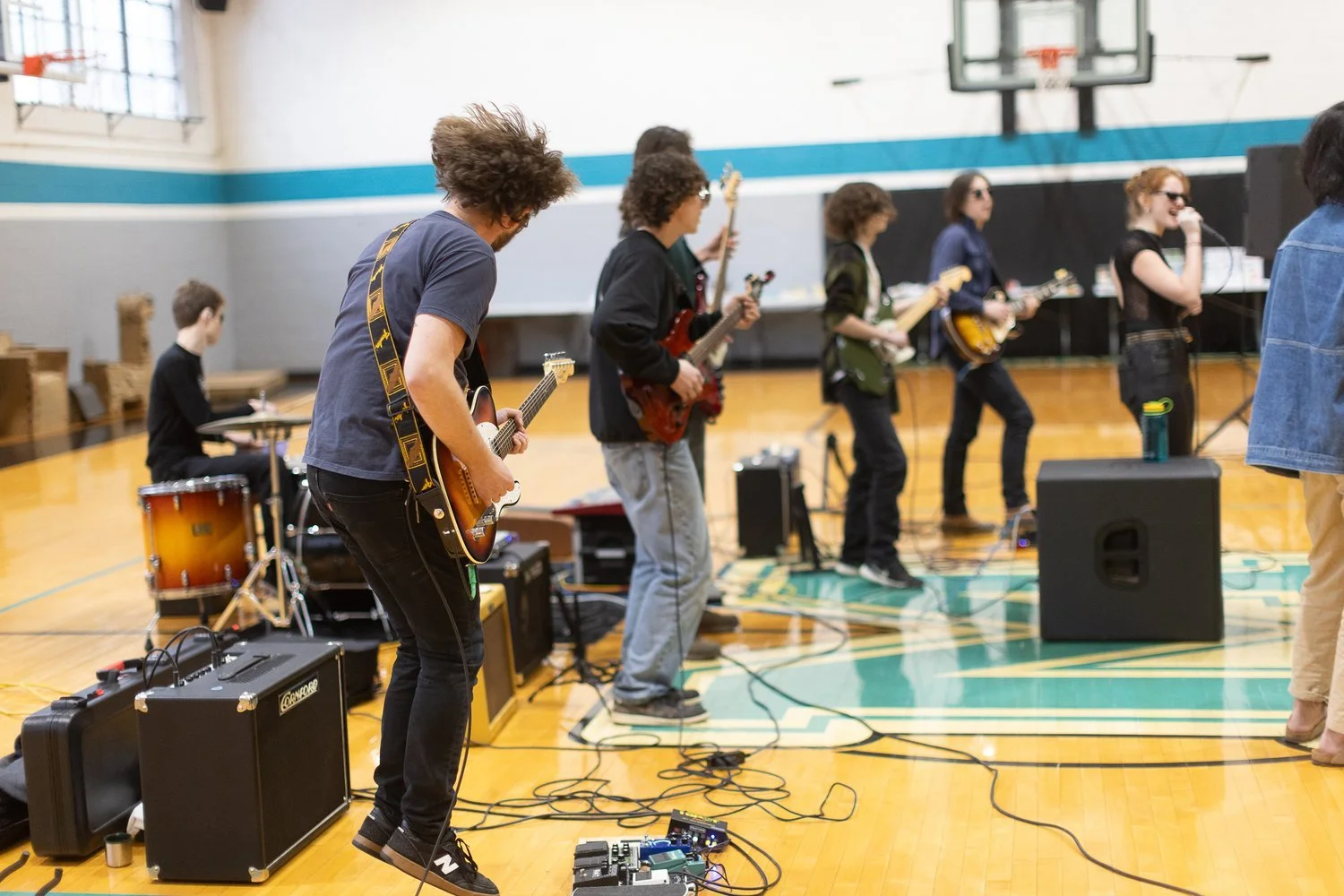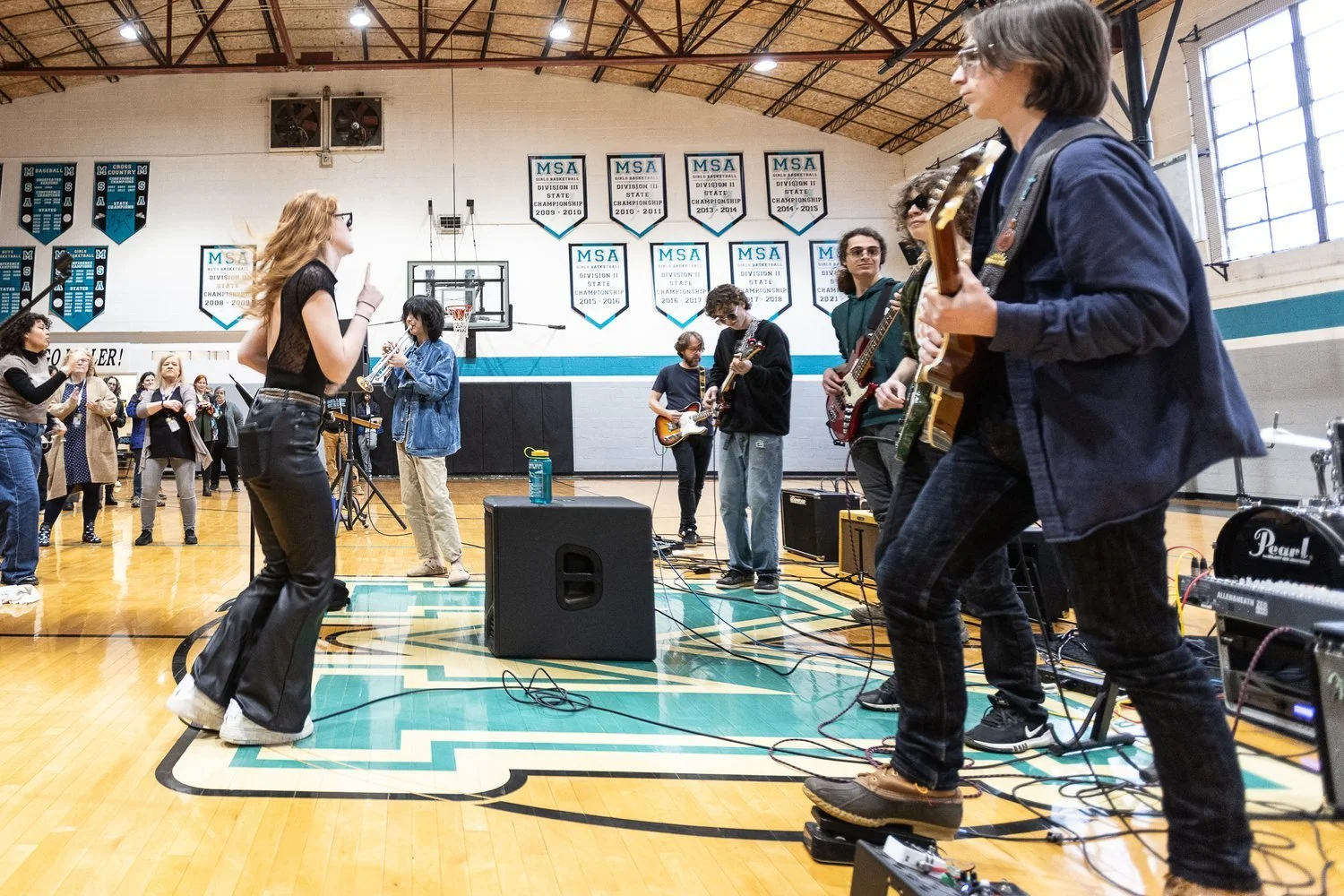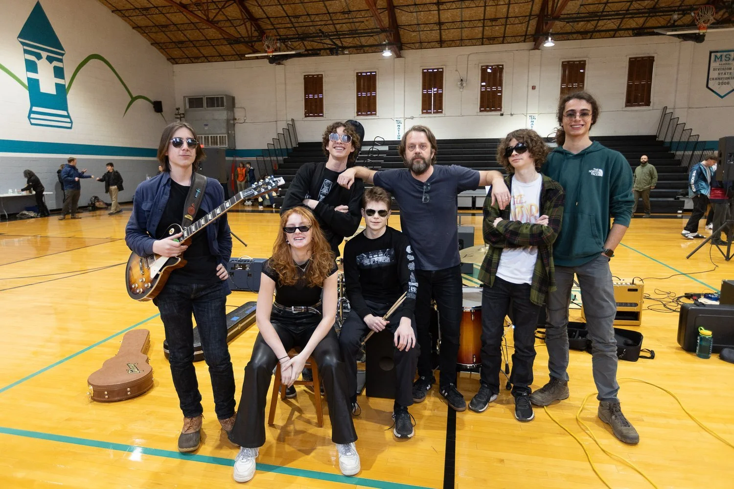 Dr. Eaton and his students spent three days debating classic tunes, improvising on chord progressions, and digging into "the pocket." Students collaborated and chose to work on one seminal classic rock song, "White Room" by Cream. While vamping and grooving and jamming together, students dove into many aspects of the rock star persona. Beyond studying music, the students made themselves projects of style. In the end, the nuanced decision to wear sunglasses in a basketball gym highlighted the poise and humor these students wove together. Dr. Eaton explained: “We used our knowledge of chord progressions, drum beats, melodies, stage presence, and fashion design to give Miller School's opening of the calendar year a good time. Rock and roll is just one of those things, one of those genres of music that weaves the mind and the heart together -- thinking and feeling are united -- and in our case, our hands helped us out quite a bit as well.”