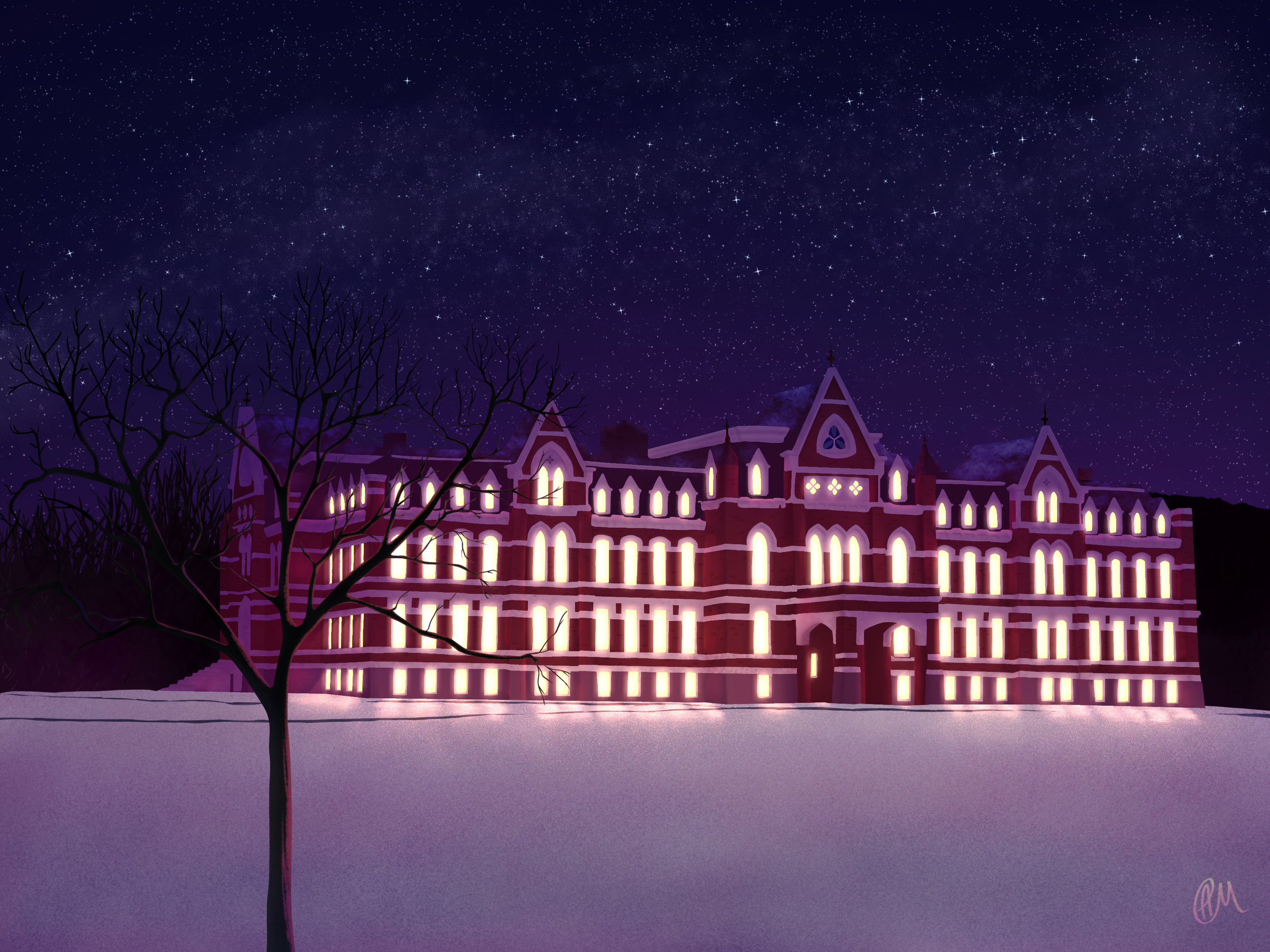 Alyssa Moyers created a holiday card of Old Main and animated a New Year's message for the 2025 holiday season. In addition to the beautiful digital rendering of Old Main, Alyssa created an animated version for electronic holiday cards. The project celebrates the beauty of Old Main and the spirit of creativity on the Hill.