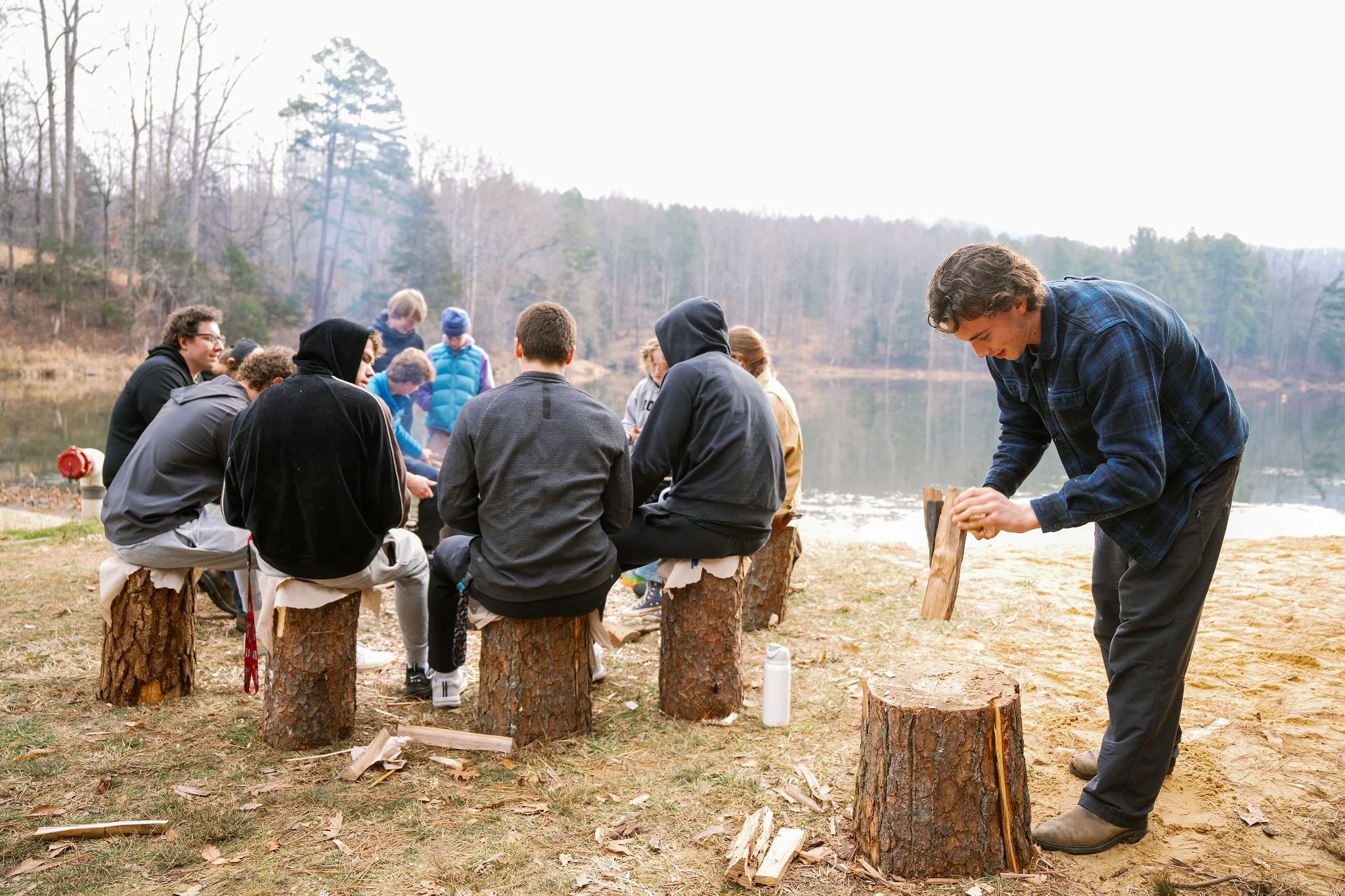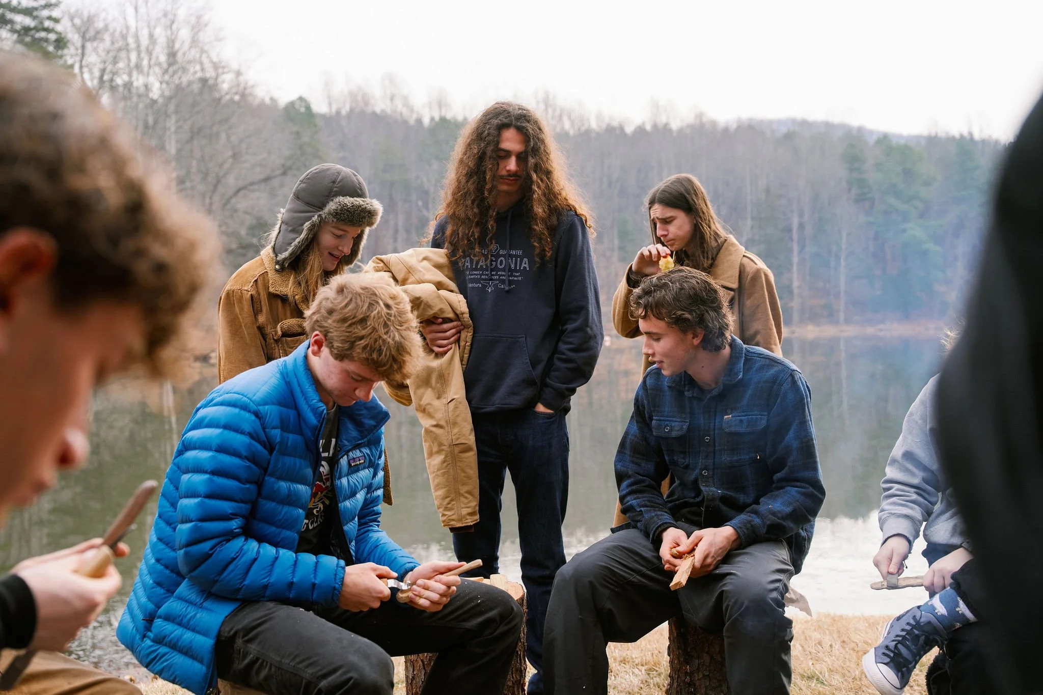 At the edge of Alumni Lake, a fire burned against the cold. Students gathered in a loose circle, blocks of wood in hand, carving knives working slowly through grain. Under the guidance of Design/Build teacher Matt Olowin, the assignment was simple: make a spoon.